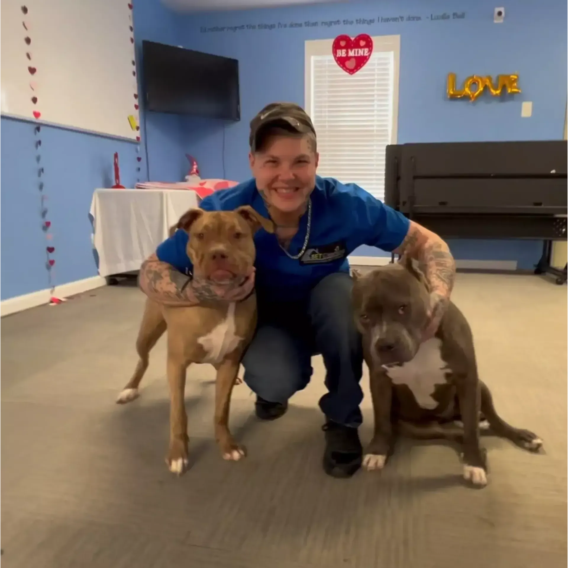 - Our mascots, Blu and Bonnie, are like furry stress relievers, always ready to offer a wagging tail or a slobbery kiss to anyone who needs it.